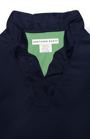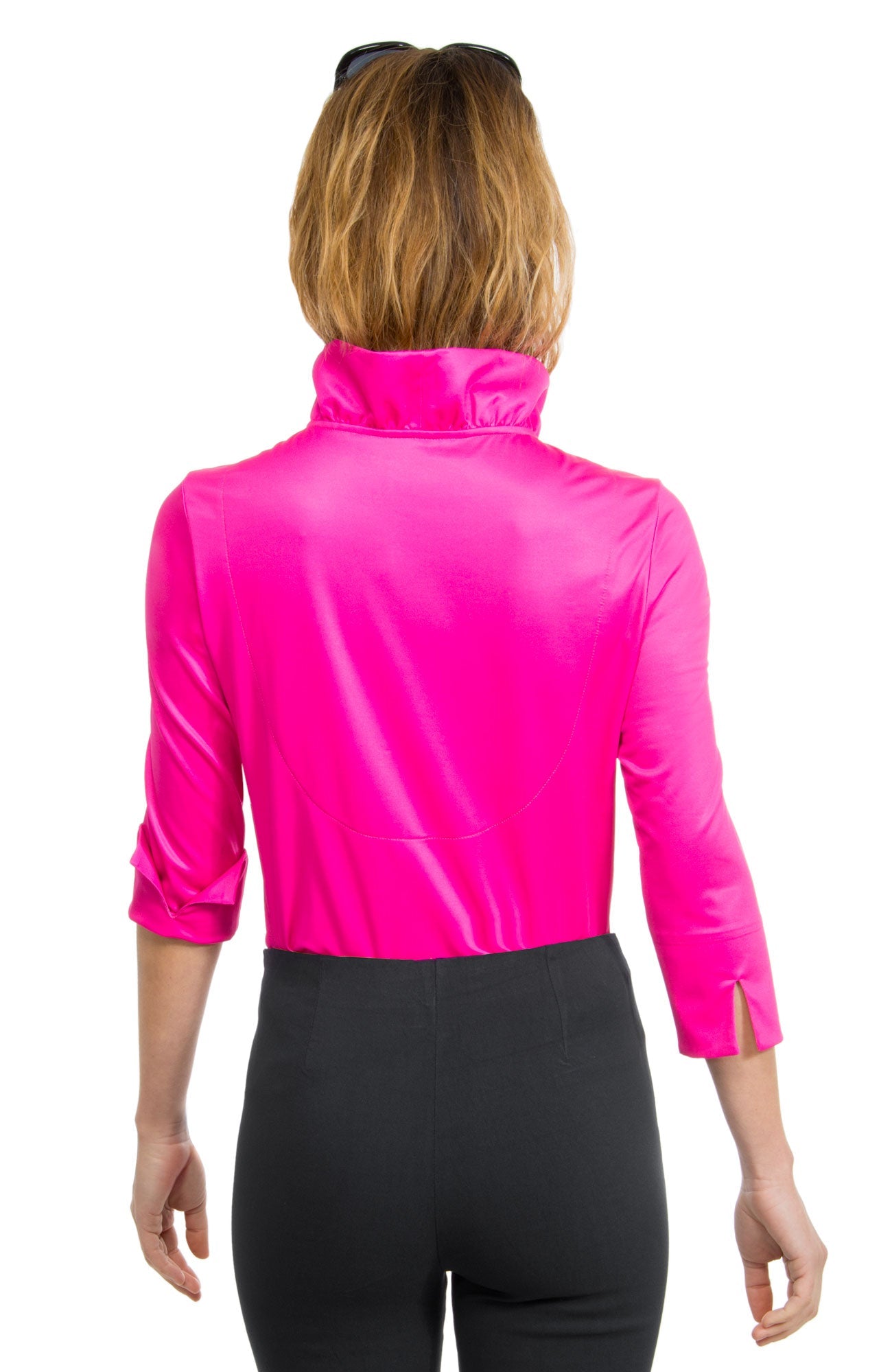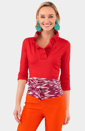 Meet your new style standout: the Jersey Ruffneck Top. With its bold stand-up ruffle neck, peek‑a‑boo 3/4 sleeves with turn‑back cuffs, and soft stretch jersey fabric, it effortlessly blends flirty charm and everyday comfort for a chic statement.