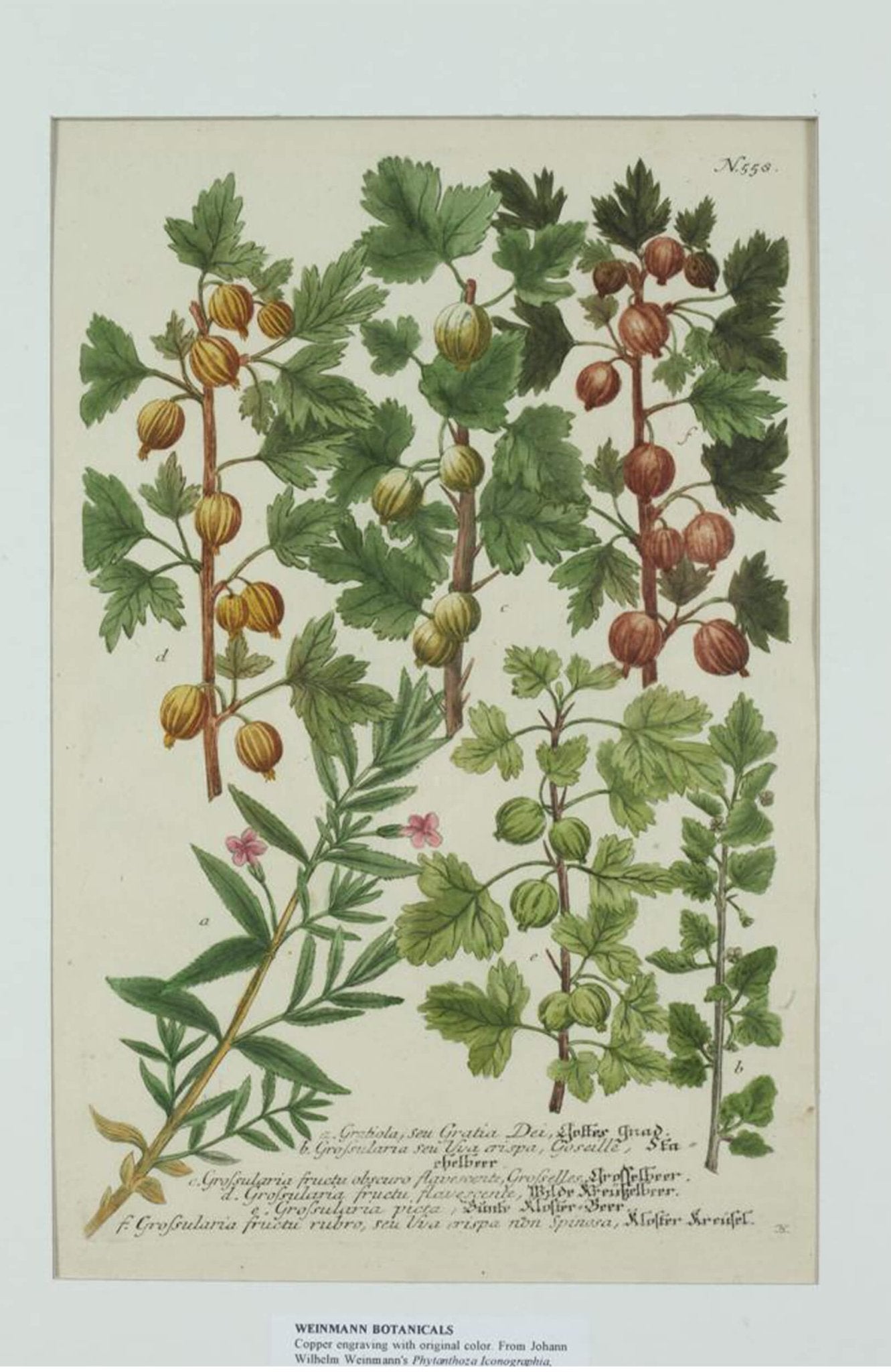 Weinmann was greatly respected for his writings on medicinal plants and herbs, and "Phytanthoza Iconographia" is recognized as the first important botanical work to use colour engraved prints. Provenance: The Old Print Gallery, Washington, DC.