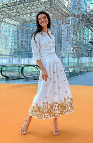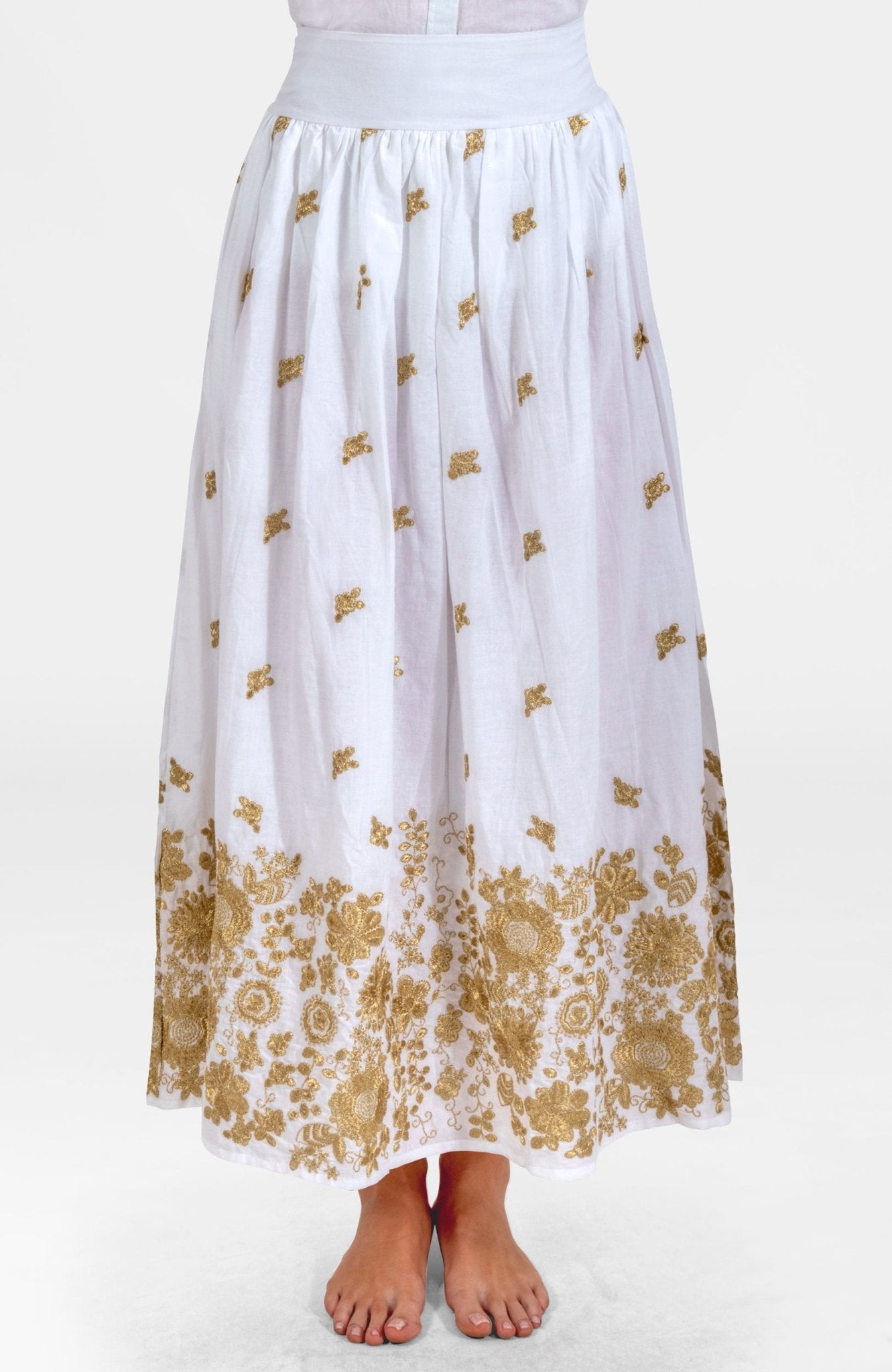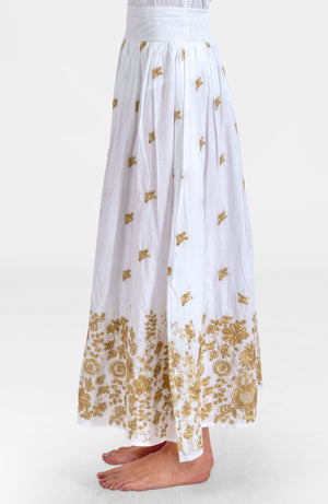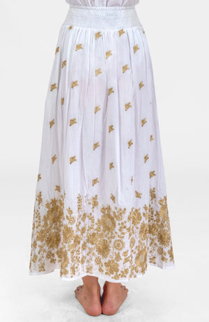 - Zari Metallic Thread Embroidery on White