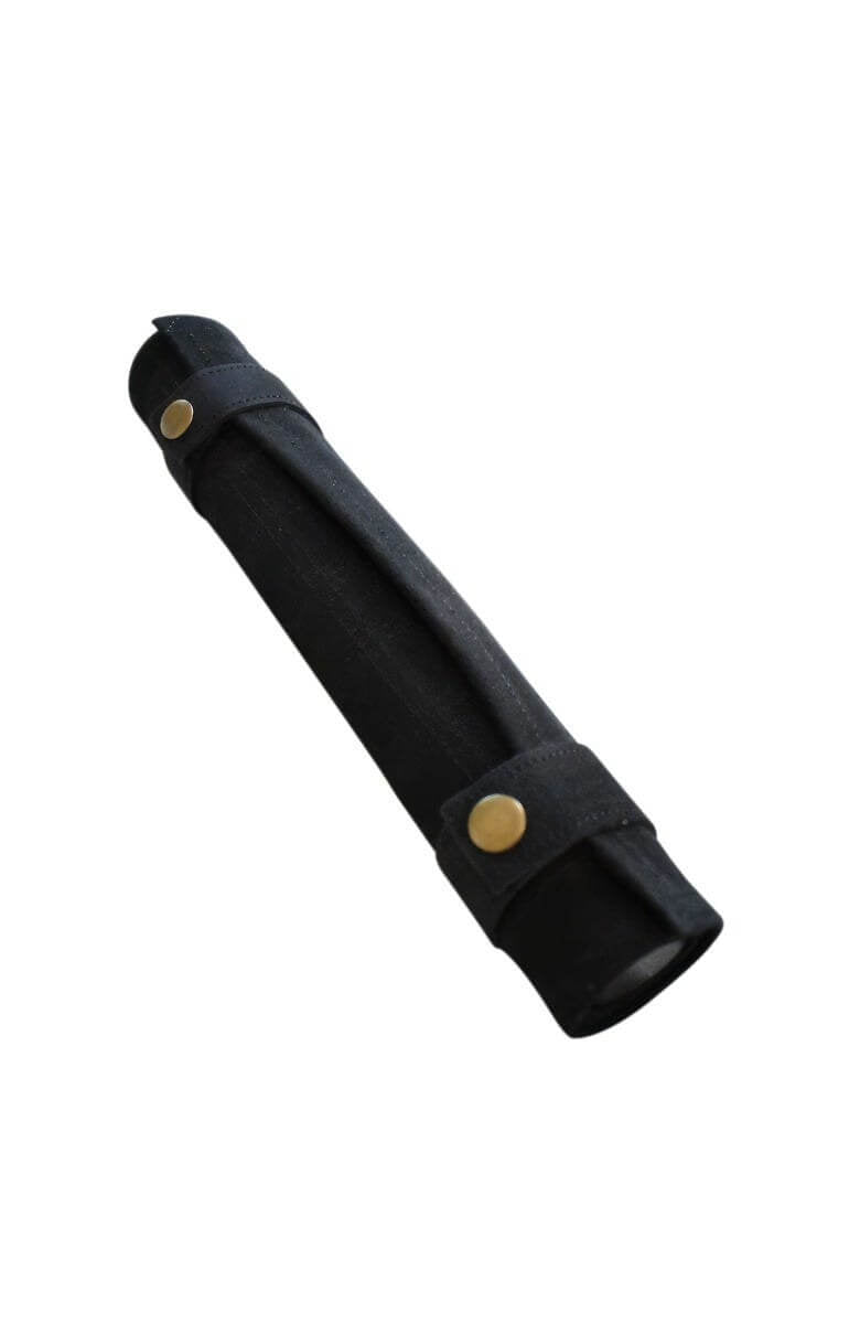 Press-stud fasteners keep it closed once tightly rolled up.