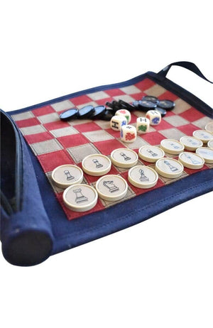 Leather Roll-Up Chess & Checkers Set with Poker Dice