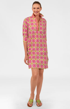 - Coordinating Contrast Banding: Front Placket/ Side Slits/Turn Back Cuffs