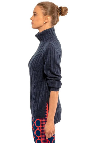 Cozy must-have sweater, in our classic cable knit design with a relaxed fit. A Turtleneck that is soft, warm, and stylish. Perfect for layering on chilly days, weekend outings, and casual nights.