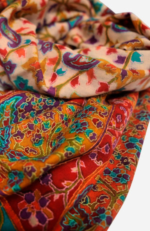 - Hand Woven Cashmere Pashmina Totally Covered In Floral/Paisley Motif