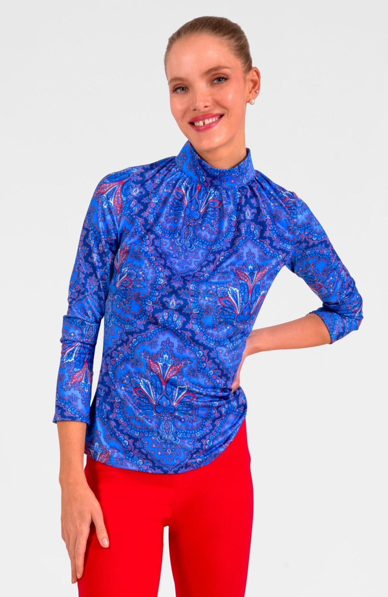 - Softly Shirred Mock Neckline