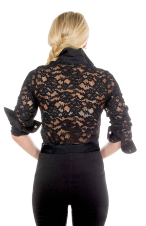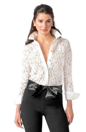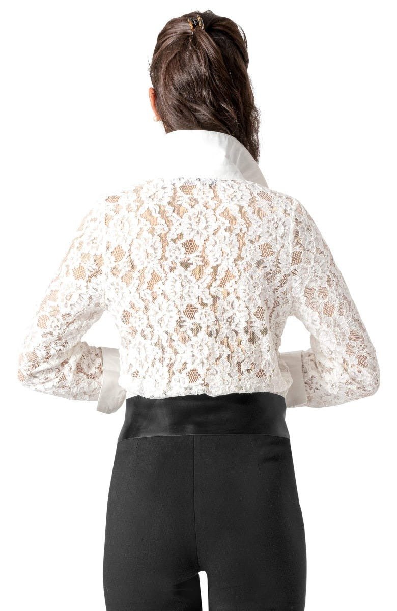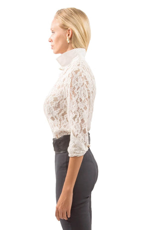 - Body / Sleeves - Alencon Lace; Collar / Cuffs / Placket - Cotton