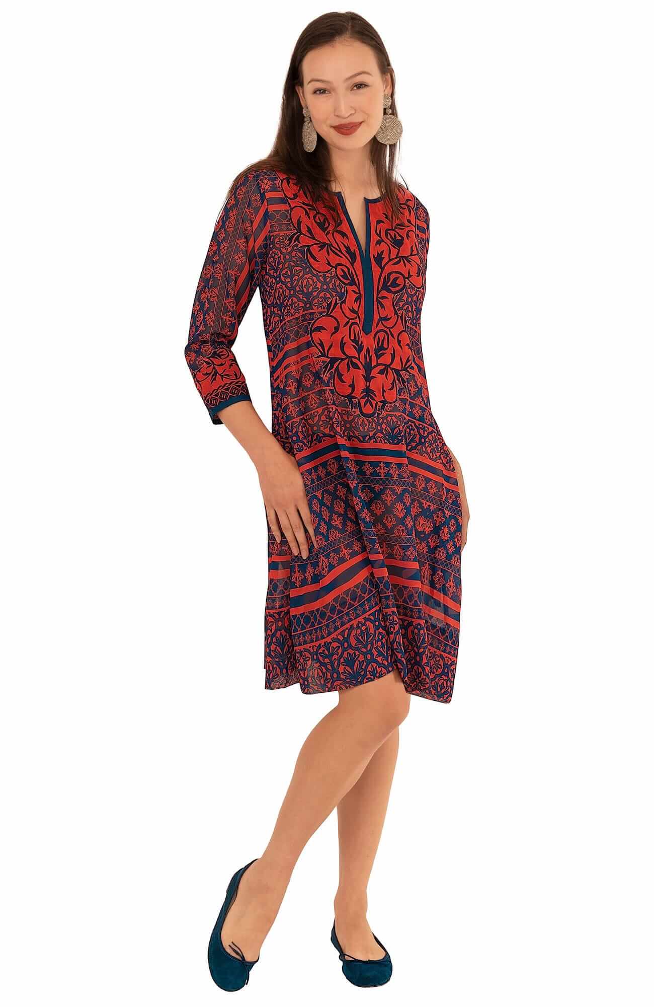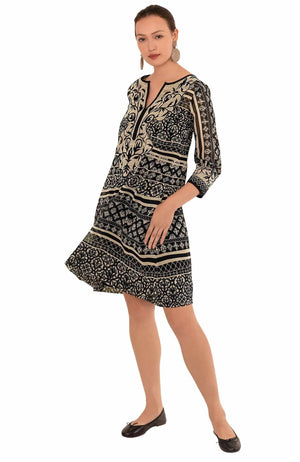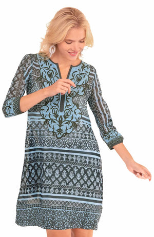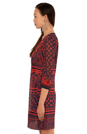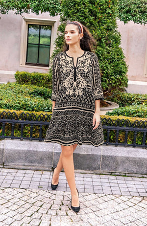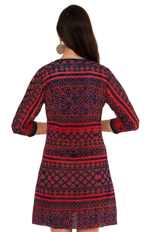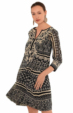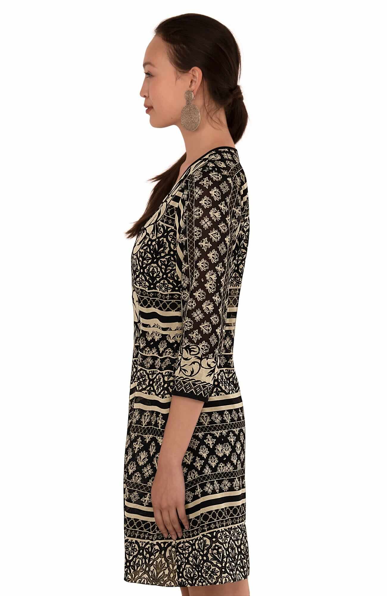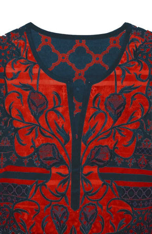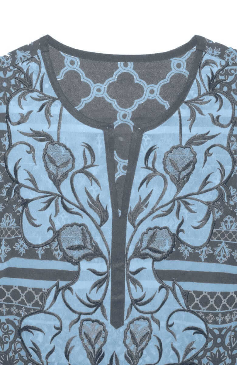 Intricately Embroidered Panels on Either Side of Front V-Neck