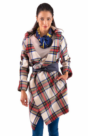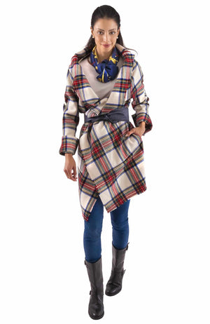 Plaid Wrap Coat With Shawl Collar - Duke Of York - Final Sale