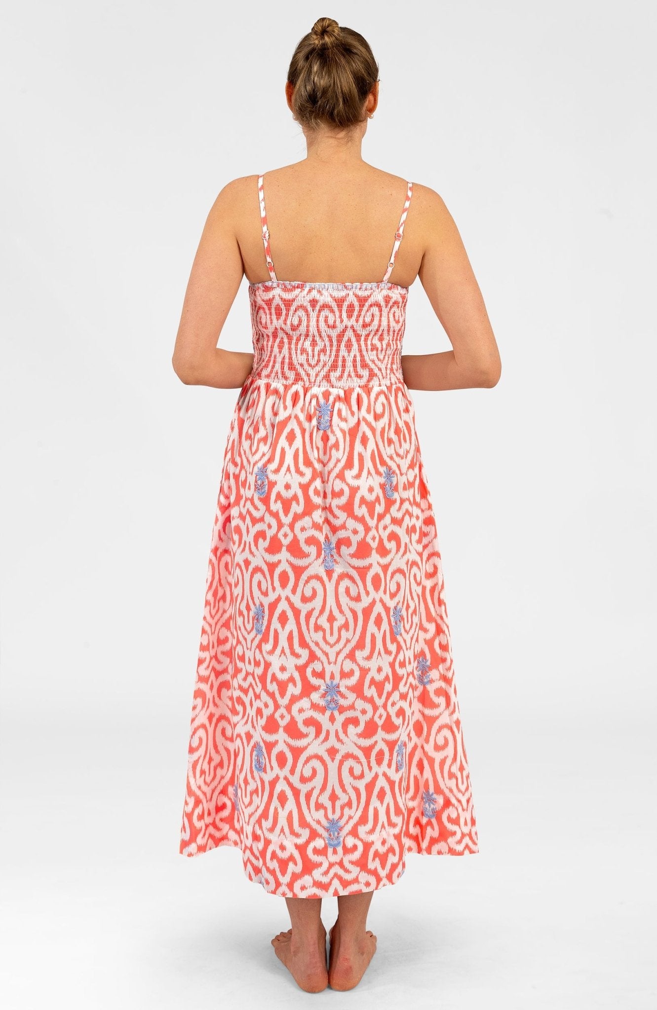 The Fiesta Maxi Dress Arabesque is a stunning sun dress designed for effortless elegance and comfort. Key features include: