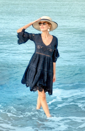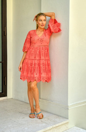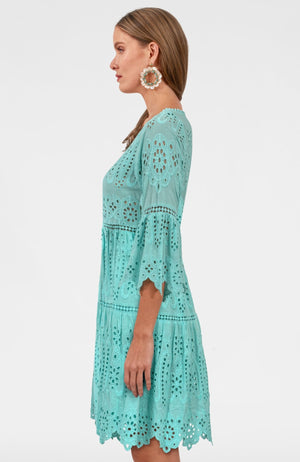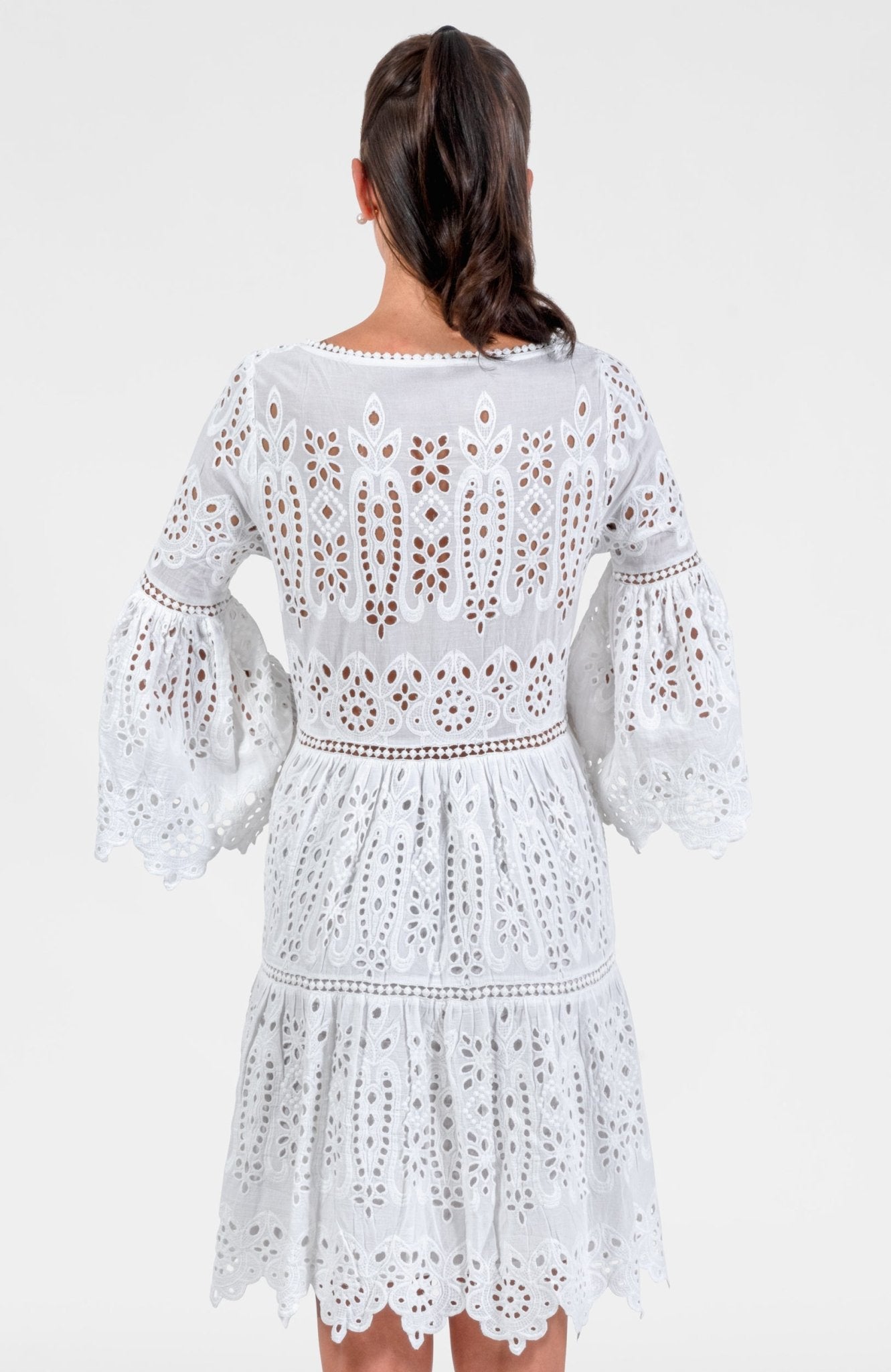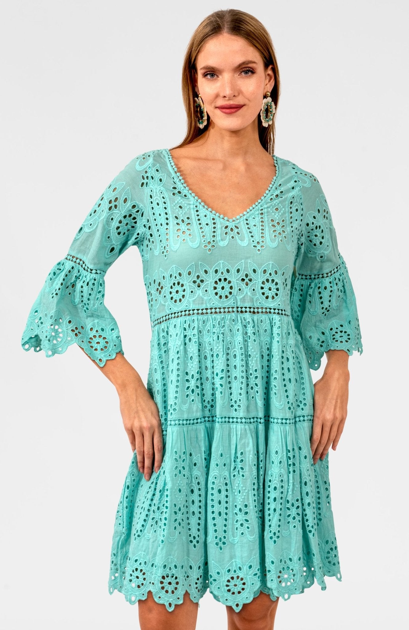 - 3/4 Bell Sleeves W/ Eyelet Embroidery