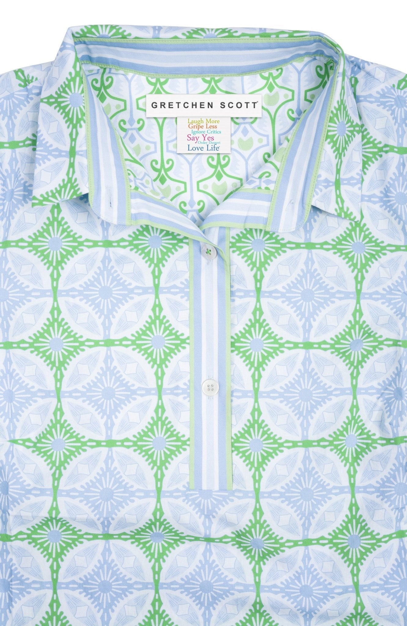 - Shell Buttons Along Front Placket