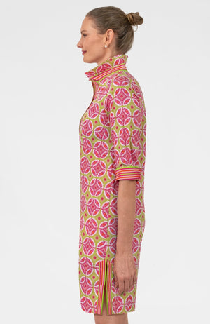 - Coordinating Contrast Banding: Front Placket/ Side Slits/Turn Back Cuffs