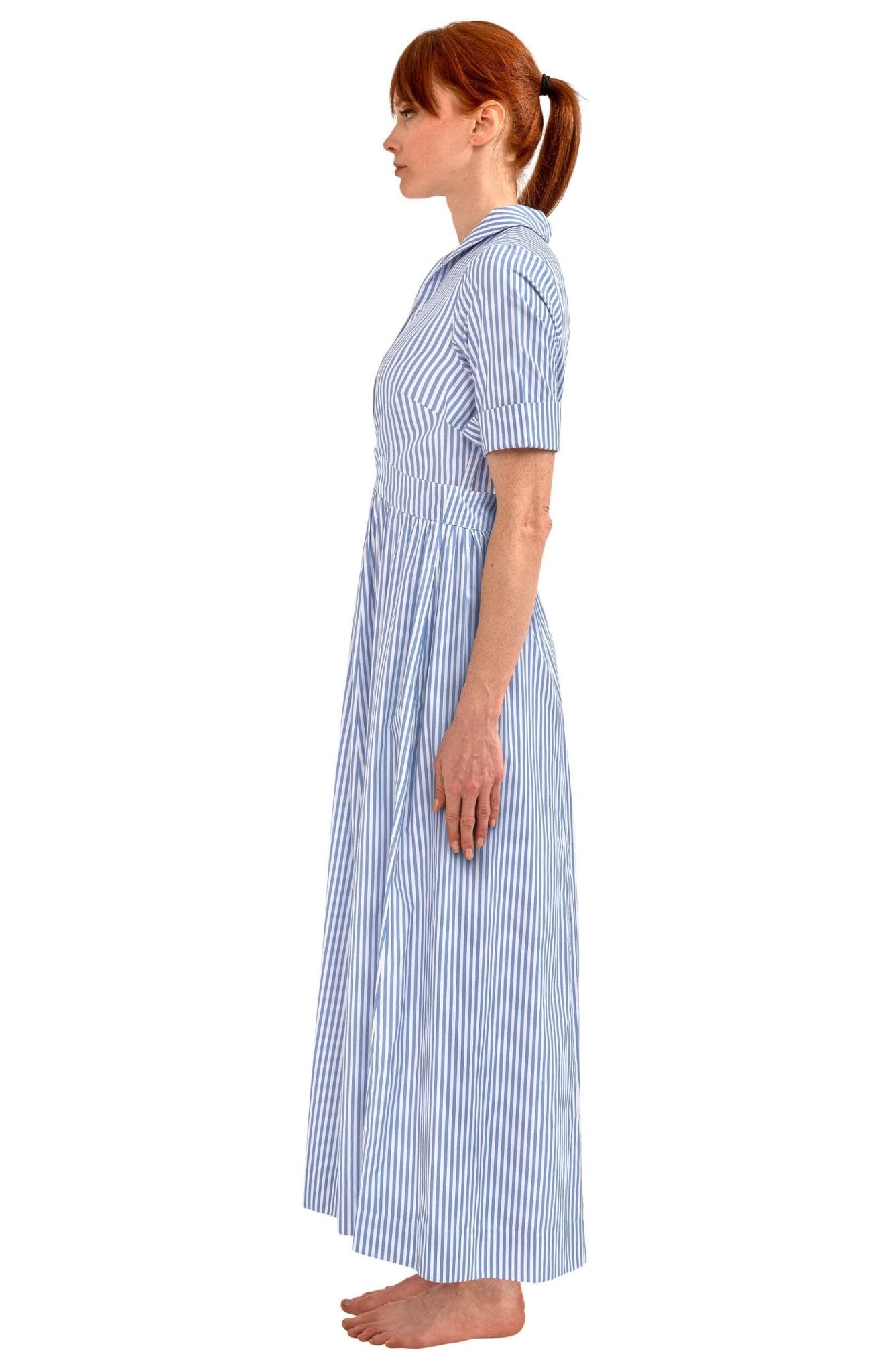Measure around your natural waistline, keeping the tape a bit loose.